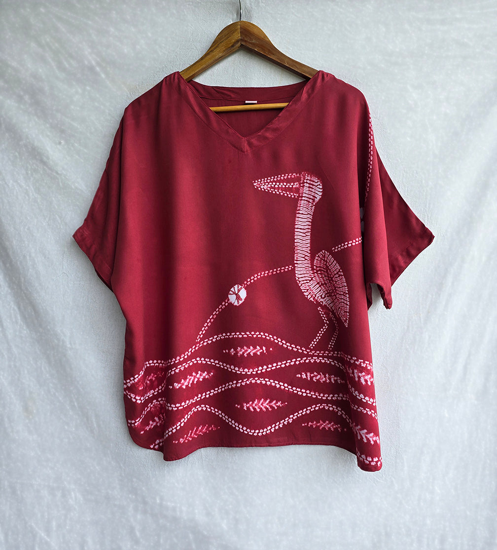 Inspired by Japanese fashion, this loose-fitting cotton top is comfortable, soft and perfect for those days when you want to dance around without ripping a seam. Hand dyed by our experts, this piece showcases ‘Nui Shibori’ , an ancient Japanese stitch resist dyeing technique